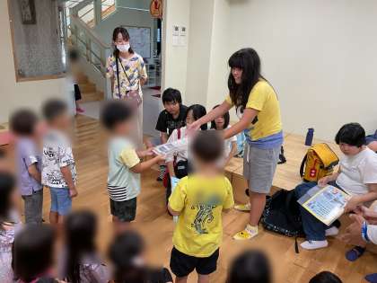 そのイベントに、ももやま白菊保育園のみなさんをお招きするために、小学部の児童がポスターを渡しにいきました。