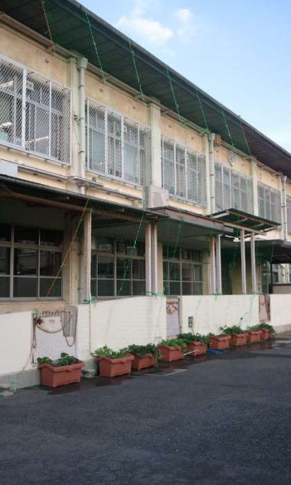 今年は自立活動室前に設置しました。環境美化委員会の児童生徒が苗を植え,育てている西洋アサガオ。夏休みに入る頃には屋上まで伸びるでしょうか?楽しみです。西日が強い自立活動室,今年は涼しくなりますよ。