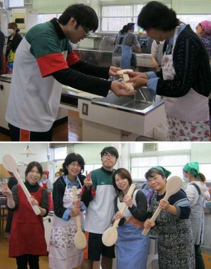 ワークスタディ「環境メンテナンス」班がPTAから注文を受けて製作していた「大型しゃもじ」が完成しました。明日の呉竹フェスタ秋の豚汁作りに使用する「大型しゃもじ」です。本日,豚汁作り準備中のPTAの方に納品させていただきました。納品担当の生徒は,自信作を納品できる喜びから自信たっぷりの大きな声で「ご注文いただいていた特大しゃもじが出来上がりました。どうぞ使って下さい。」と言って渡していました。PTAの方々も「上手にできているわね!」「使いやすそうだわ!」と口々に反応して下さいました。明日の本番で使われることが楽しみです。