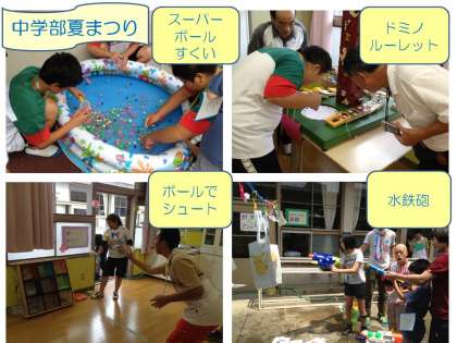 7月23日(火)の午前中,小学部は「夏のつどい」,中学部は「夏まつり」を行ないました。