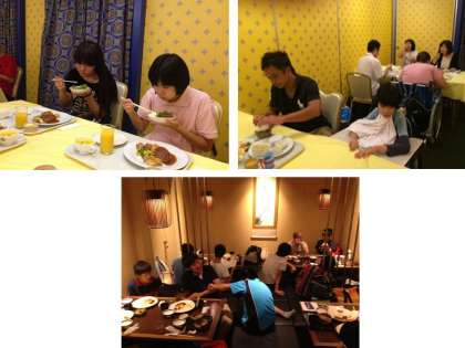 1グループは福祉タクシーに乗って,まず京都駅前のアパホテルへ。ここで,電車で来た2グループと合流し,バイキングレストラン「ラ・ベランダ」で昼食をとりました。3グループ,4グループも電車で京都駅まで行き,堀川通りのアパホテル「Gin yuba KYOTO」で昼食を食べました。おいしいお昼ご飯にみんな大満足です。