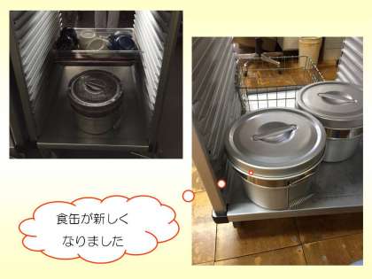 そして,食缶が新しくなり,「クリームシチュー」を入れて提供しました。変化に気づいて,いつも以上に大切に使っている様子がみられました。