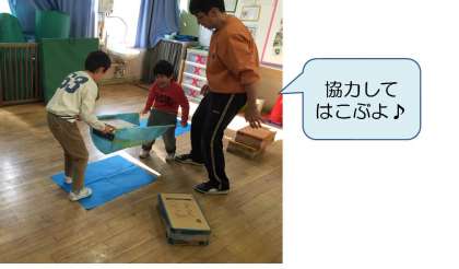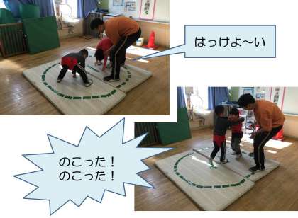 大好きなものや大好きな遊びを見つけて,自分からどんどん向かって行く中で,「もっとやりたい」「いや」と意思を表出したり,ルールや順番をちょっぴり意識したりする力を育てて行きたいと考えています。
