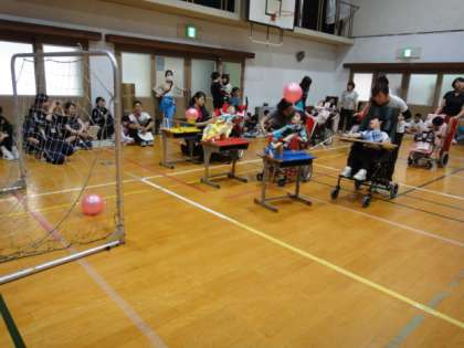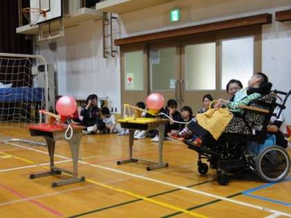 今日の小学部の運動会練習は「めざせ!オリンピック〜東京への道〜」「大玉ころがし」「玉入れ」を中心に行いました。「めざせ!オリンピック」では,紐を引っ張るとボールが飛ぶ仕組みや,聖火台に火を灯す仕掛けを楽しんでいました。