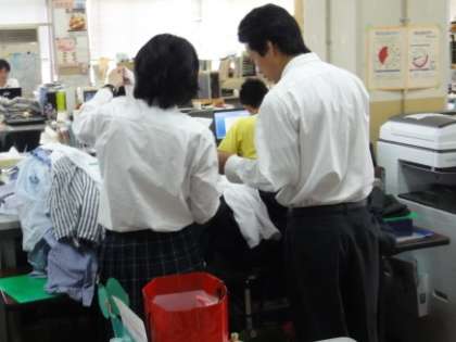 鳴滝総合支援学校生徒の学習の一つとして,呉竹の教職員の衣類をクリーニングする取組があるのですが,本校の高等部生徒も学習の一環として,この取り次ぎ業務に関わっています。