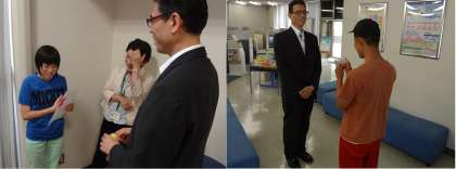 今年度も中学部では,自分たちがワークスタディで作った製品を地域の方にお届けする『地域にこにこ配達隊』を行います。17日(金)は今年度のメンバー5人で京都信用金庫に「セダム」を配達しに行きました。支店長様が対応して下さり,丁寧に製品を渡すことができました。また,生徒が作った名刺を手渡して自己紹介をしたり,「あのカメラは何ですか?」「なぜ,フェルメールの絵があるのですか?」等と興味を持ったこと質問したりしました。