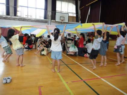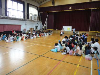 桃山小学校2年生のみんなが呉竹に来てくれて,交流及び共同学習をしました。まずは,呉竹の代表児童がしっかりと始めの挨拶をしました。そして,呉竹と桃山小のみんなで,学校探検と,体育館でのバルーンなどを使った遊びをしました。桃山小のお友達が終わりの感想で「みんなと仲良くなって楽しかったです。」などと言ってくれていました。自然な子ども同士の関わりの場面がたくさん見られました。