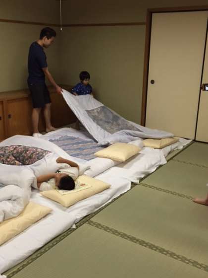 お布団も自分達で敷きます。たくさん活動した1日だったね。ゆっくりお休みなさい・・・