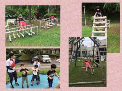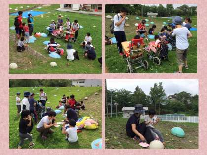 外遊びを始めました。シャボン玉や遊具遊びなどを楽しんでいます。