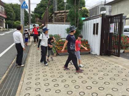 無事に帰ってきました。徒歩組は暑い中でしたが30分程で帰ってくることができました。教室でしっかり水分補給をしてゆっくり休んでいます。午後からのスヌーズレンの活動も楽しみです。