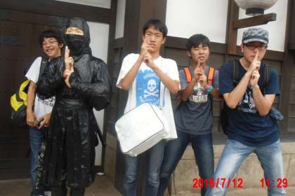 7月12日に学年の校外学習として「東映太秦映画村」へ行きました。グループごとに事前に相談して決めたコースで,お化け屋敷やトリックアート館,3Dシアター,アニメキャラクターのミュージアムなどを回りました。グループで協力して時代劇そのものの村内や楽しいアトラクションを巡り,充実した一日になりました。