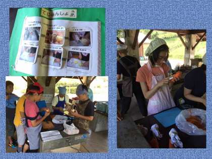カレーライス作りが始まりました。自分の担当の作業ごとに手順書を見て進めます。