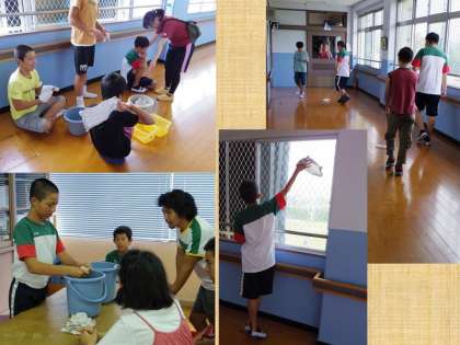 中学部(1,2枚目の写真)では,掃除ユニットやパソコンユニット等が活動していました。パソコンユニットは,見本を見ながらローマ字打ちで自分の予定表を作る活動や,インターネットで検索した味噌汁の作り方のページから必要な情報を抜き書きする活動を行っていました。