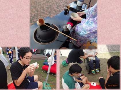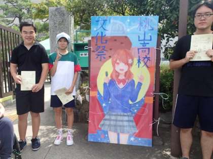 高等部の陶工班では,水曜午後のワークでお隣の京都府立桃山高等学校へ校外学習に行きました。桃山高校では,今日から学校祭が行われており,地域の学校として呉竹ワーク班の製品展示や活動紹介がありました。これからの製品制作に役立てようと,その様子を見学に行きました。桃山高校の先生方に案内してもらったり,高校の茶道部にお茶の接待を受けたりと,短い時間でしたが楽しい時間を過ごせました。