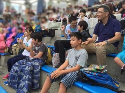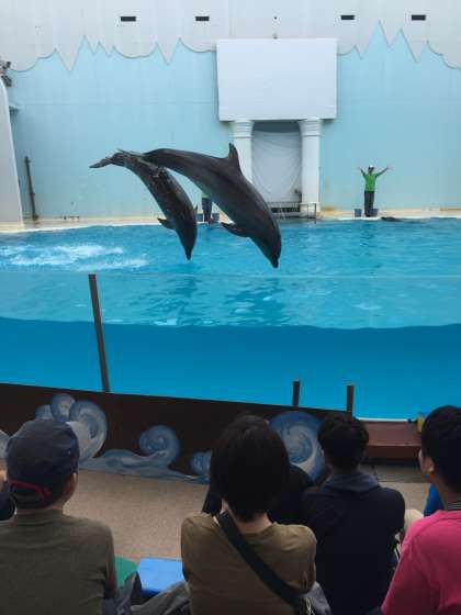 イルカショーではイルカたちの迫力あるジャンプにみんな見入っていました。