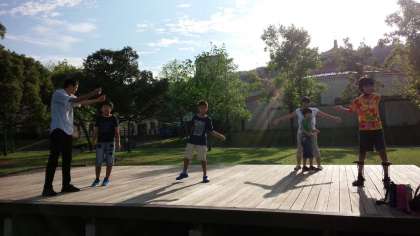神戸はとてもいい天気です。早速朝のお散歩タイム。ラジオ体操で頭も体もスッキリして、これから朝ごはんをいただきます。