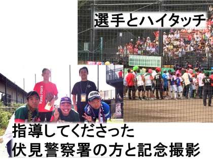 9月11日(日)伏見桃山球場で行われた女子プロ野球公式戦「京都フローラVS埼玉アストライア」戦で本校の高等部生徒3名がボールボーイを務めました。試合では伏見警察署の方にご指導いただき,炎天下の中,選手のバットやボールの回収。試合後には充実した表情で記念撮影。「楽しかった」「選手は打つのも守るのもうまくてびっくりした」との感想を話していました。ボールボーイの役割を紹介し,指導してくださった伏見警察署スクールサポーターのみなさま,ありがとうございました。