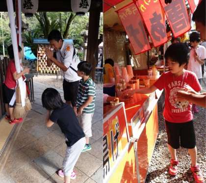 地域の御香宮神社は,この1週間程お祭りです。今日は午後から小学部高学年がお祭りに出かけました。