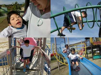 八幡市民スポーツ公園へ校外学習(遠足)に行ってきました。晴れ&涼しいという最高の天気の中,たくさんの遊具などでたっぷり遊びました。
