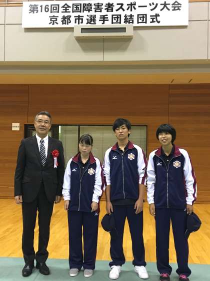 先日の後期始業式でも紹介があった「第16回全国障害者スポーツ大会」への本校からの出場選手が,結団式に参加してきました。緊張した面持ちでしたが,一人一人の呼声に対してしっかりと返事をする姿が素敵でした。本校の,そして,京都市の代表として頑張ってきて下さい!!