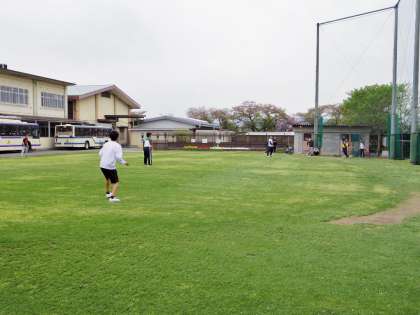 給食後のひととき,芝生では自主的に集まってソフトボールを楽しむ子どもたちの姿がありました。こうやって素の自分で楽しめる時間を持てるって素敵ですね。