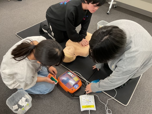 当日は消防署の職員の方をお招きし、心肺蘇生法やAEDの使用方法について学びました。