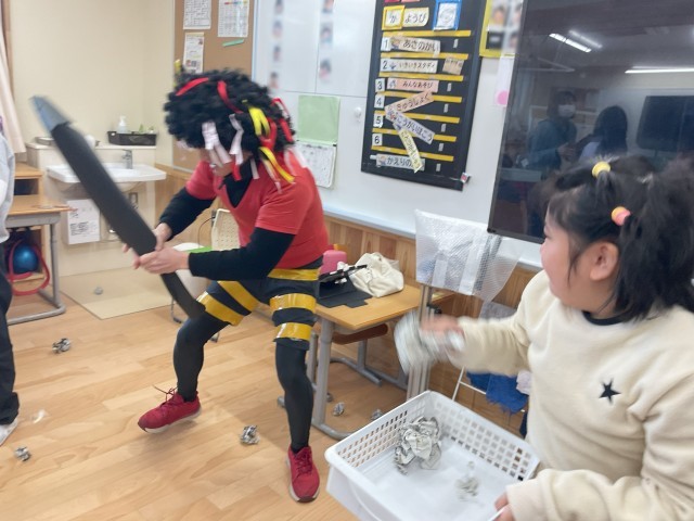 鬼が出てびっくりした人もいましたが、果敢に鬼に立ち向かいました。