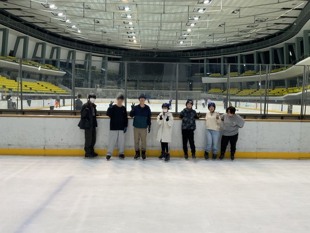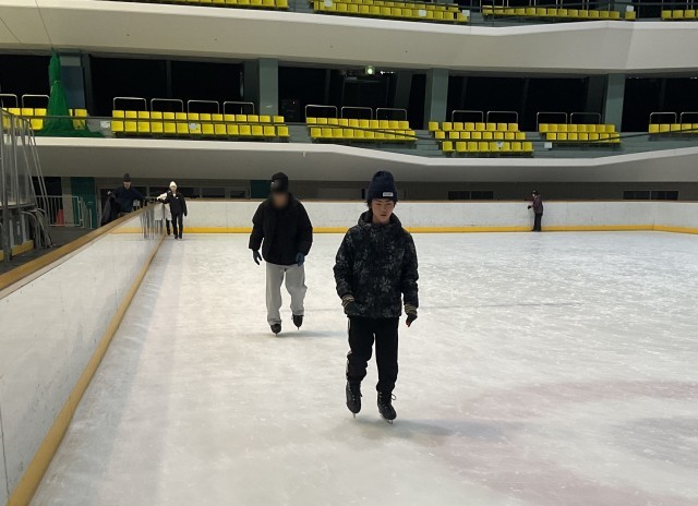 初めは氷の上でバランスを取ることに苦戦する様子も見られましたが、手すりを持ってゆっくり進んだり、友達同士で声をかけ合ったりしながら、少しずつ滑ることに慣れてきました。