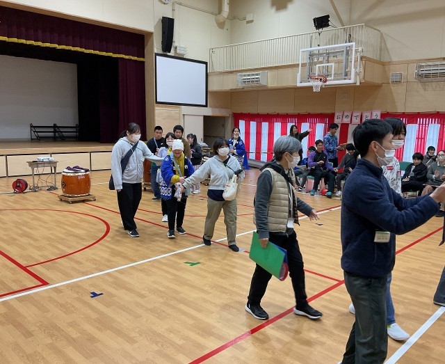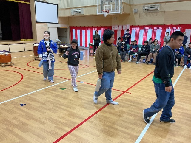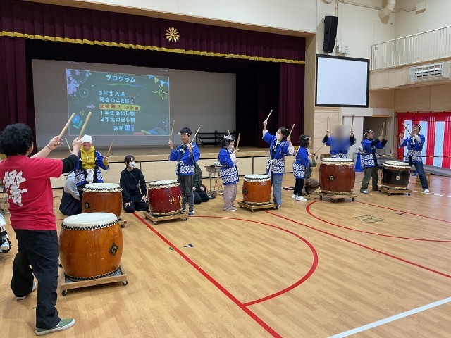 生徒会が司会進行を行ない、はじめに和太鼓ユニットからお祝いの演奏がありました。