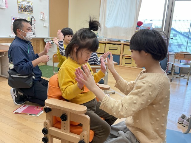 『みんな遊び』では手遊びや電車ごっこなど、友だちと関わって遊びました。