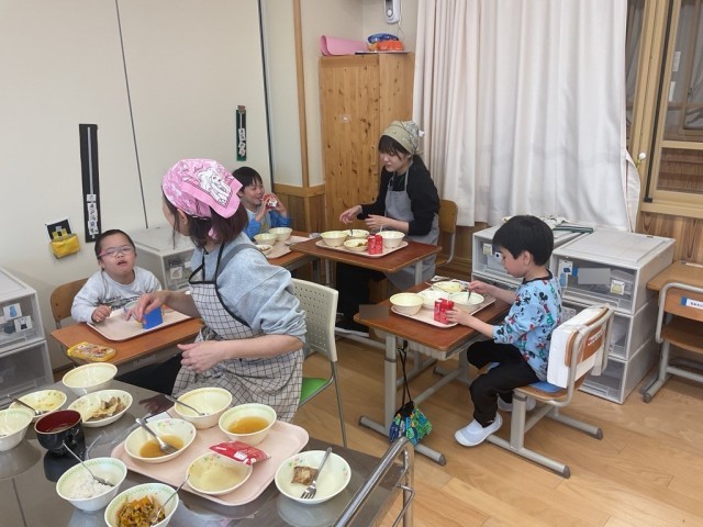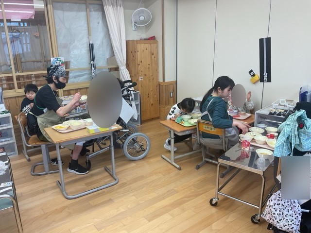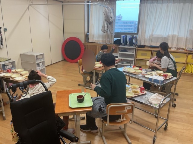 給食の時間は、それぞれのペースや感じ方を大切にしながら過ごしています。