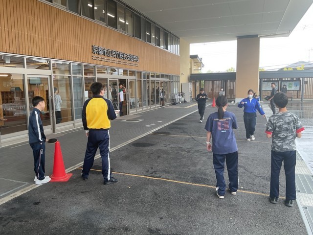 運動Aユニットは軒下でリレーをしています。