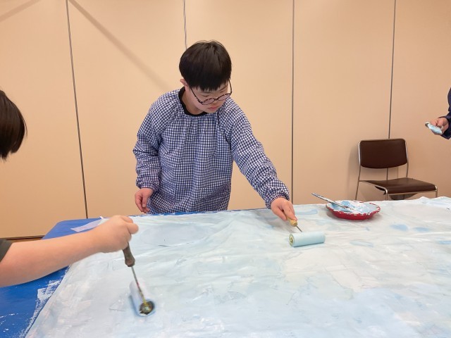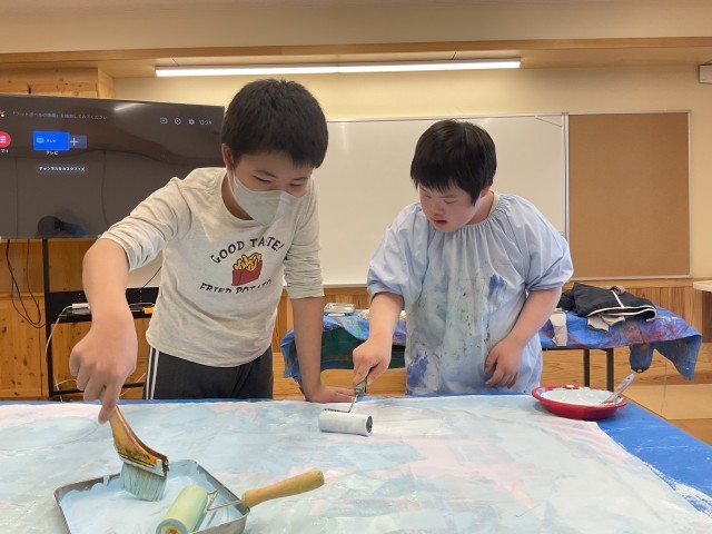 また、5月に行われる学校祭「体育の部」に向けて、学年旗の作成にも取り組んでいます。