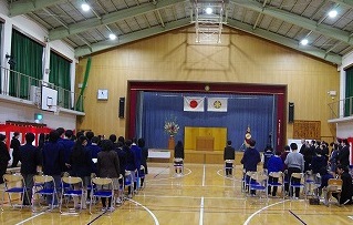 保護者をはじめ,たくさんの来賓の方々,病院関係者,卒業生,教職員,そして在校生に見守られ,今年度は2名の中学生が本校を卒業しました。卒業生による答辞では,先に退院し,それぞれの場所で今日を迎えた仲間のことにも触れ,桃陽での思い出を振り返りながら,自身の成長を感じたことや,周りの人々への感謝の気持ちが述べられました。温かく,感動的な式となりました。