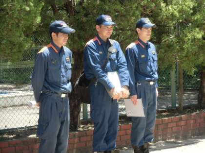 運動場へ無事に避難したあと、伏見消防署の方から、火災の際に起こる煙の危険性についてお話しいただきました。その後、学校長からの講評があり、児童・生徒は真剣な表情で話を聞いていました。火災の際に必要な心構えをしっかりと確認できました。