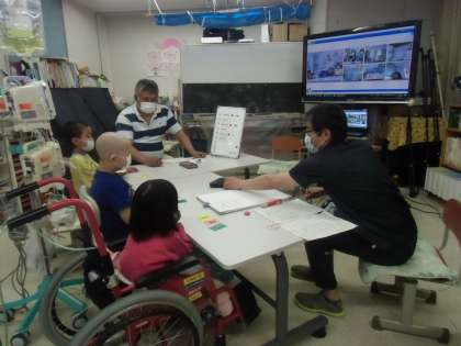 6月14日(木)4時間目,府立分教室・市立分教室・京大分教室・ベッドサイドをTV会議システムでつなぎ,ぶんぶんタイムを行いました。