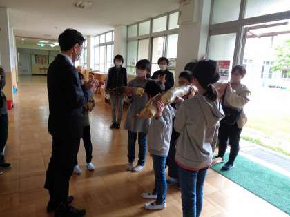 本校小学部では「まなびの森」へ散策に行きました。森の中にはたくさんの自然があるだろうと予想して出発しました。実際に行ってみると,たけのこを4本も見つけることができました!たけのこの根元の土を何度も何度も掘り起こし,「疲れてきたら交代するしな!言ってな!」と声を掛け合って子どもたちは協力します。そして力を合わせて立派なたけのこを掘ることができ,学校に持ち帰って校長先生や職員室の先生たちにも見てもらいました。みんなで協力し,大きな達成感を得られたことと思います。