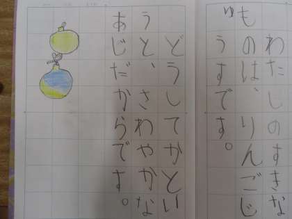 市立分教室で毎日一生懸命学習をしている児童の作文です。4月から比べると,とても字が上手に書けるようになりました。