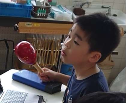 子どもたちからは「お客さんも呼んで聴いてもらおうよ」とリクエストがありました。先生たちに音楽室に来てもらって演奏を聴いてもらい、その後には一緒に楽器を演奏して、みんなで音楽の楽しさを味わいました。