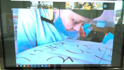 本校の小学部と交流をしました。今回はボッチャとクイズです。オンラインでのボッチャは初めてでしたが、病室から参加している児童も画面を見ながら「もう少し右、真ん中の白色のところから」など指示を出して「3、2、1」の合図でボールを転がしてもらいました。クイズでは本校の児童が用意した生き物に関するクイズにチャレンジしました。司会進行などで分教室の児童も活躍しました。