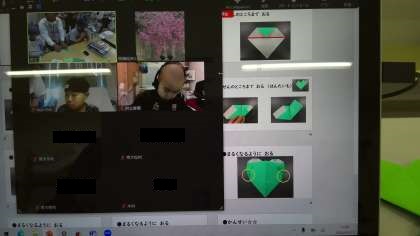小学生は葵の葉を折り紙で作りながら、本物の葵の葉がどのような形をしているのかを確認しました