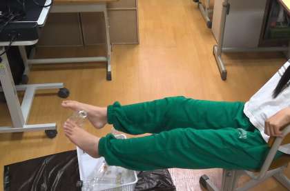 運動会の3日前に入学した児童ですが「風船ポンポン」「ペットボトル足つかみ」に真剣に取り組んでいます