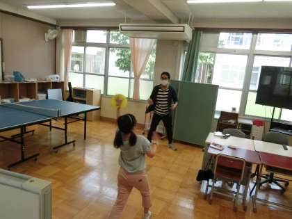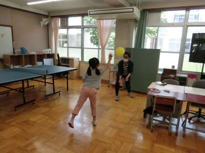 コートの大きさや何回以内で相手コートに返すのかなど、あらかじめルールを決めて試合を行いました