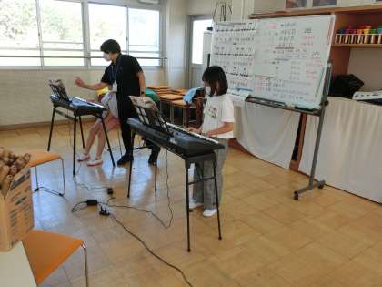基礎基本の弾き方を学習しており、先生からのアドバイスを真剣に聞いています