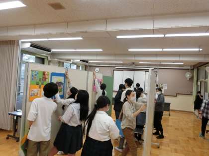 中学部が体育館ならびに展示会場のセッティングや掃除などを行いました
