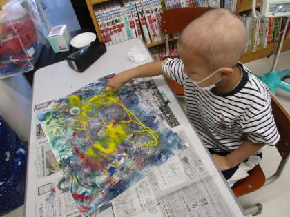 星や家などの形がきれいに浮かびあがると、「見て!できた!」「ここはどうかな?」と言いながらシールをどんどんはがしていく様子が見られました。
