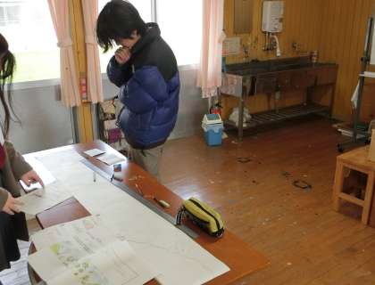 看板の下絵を考えて絵を描く係、板を切断する係、板に穴を開けて工具をセッティングする係など、各々係に分かれて活動をしています