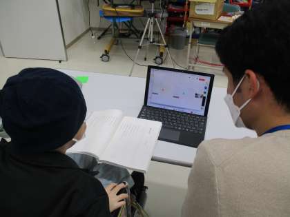 他の分教室の児童とリモートで繋ぎ、お互いに読む場所を話し合って決め、詩の朗読をしました。