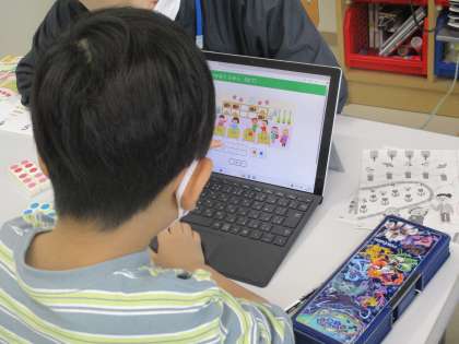 ICT機器を使用しながら、学習しています。