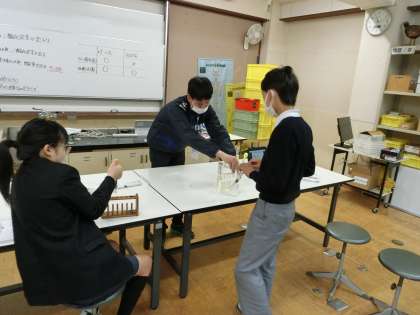 それらに石灰水を入れ、よく振ると各々違う結果が出てきました